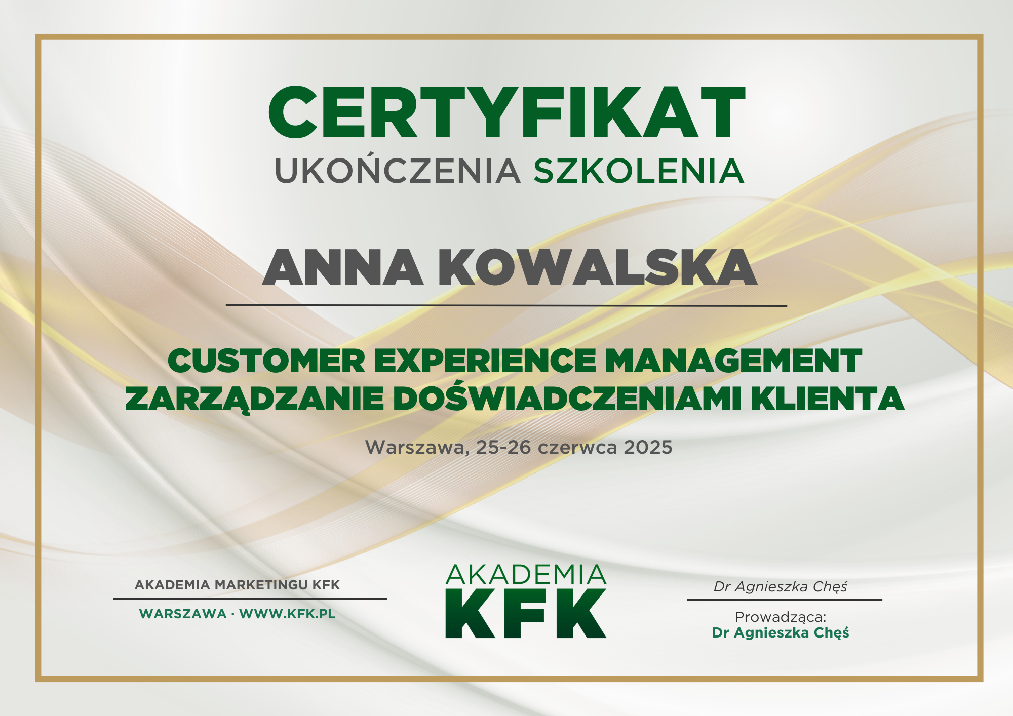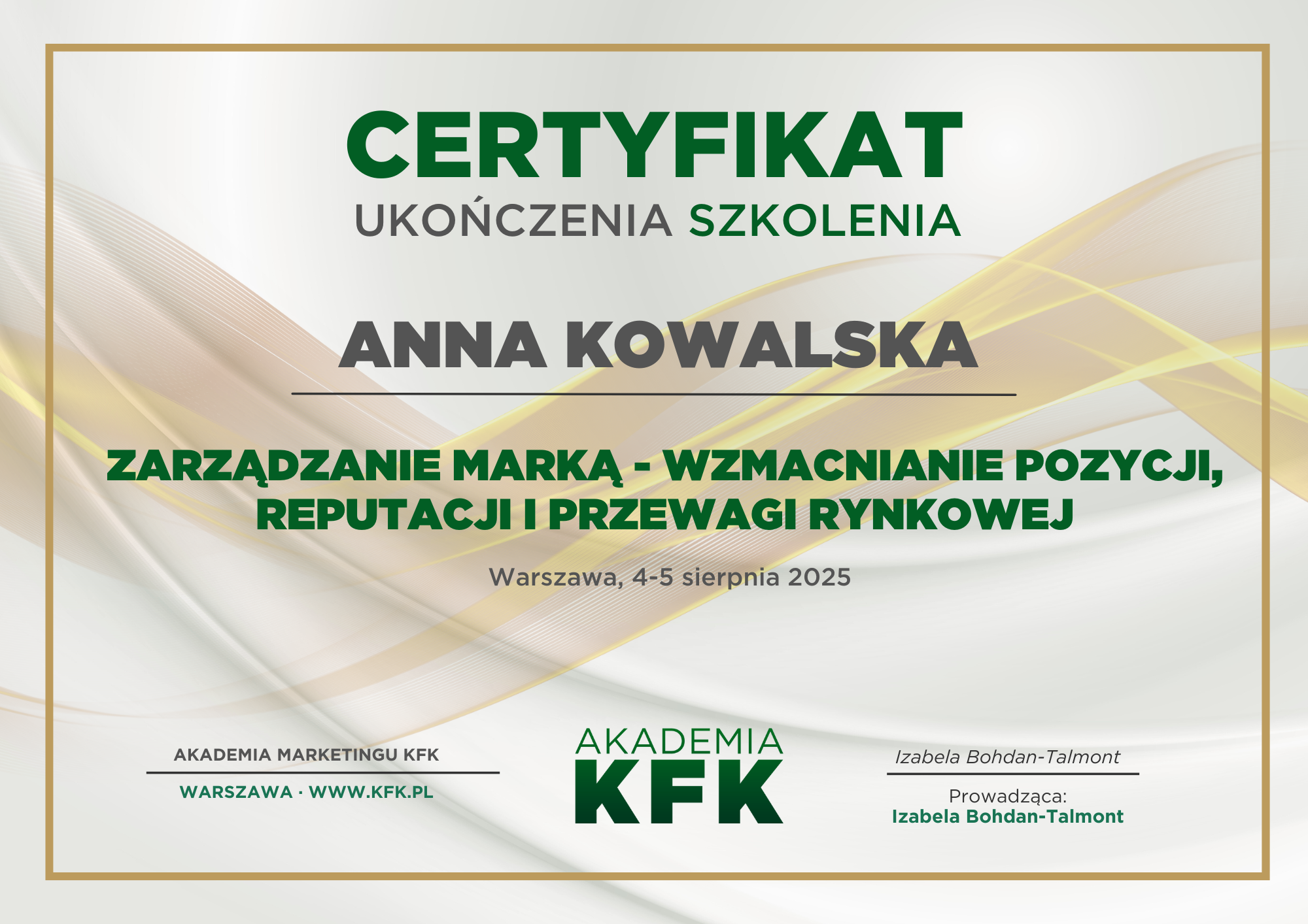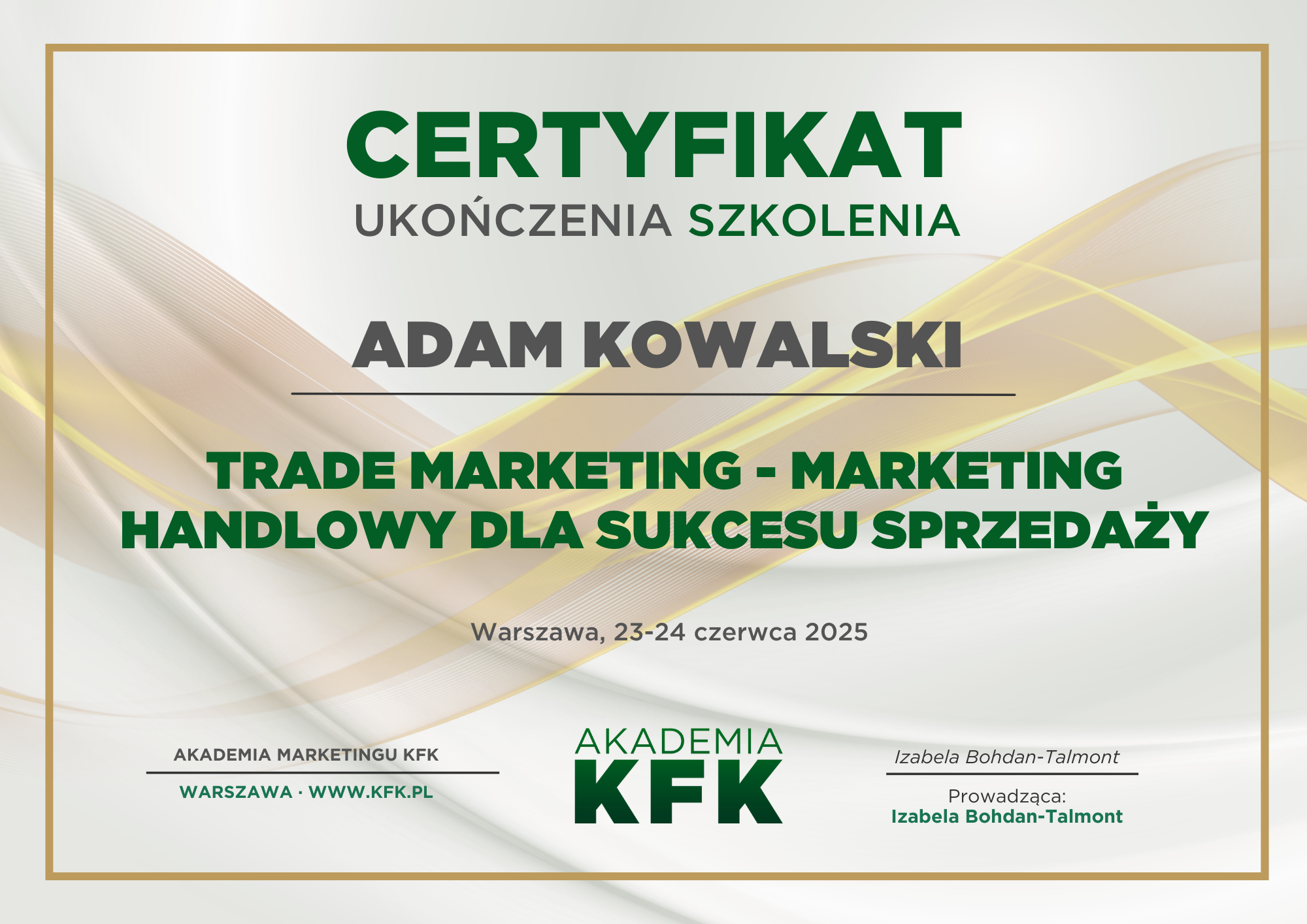 CERTYFIKATY SZKOLEŃ MARKETINGOWYCH AKADEMII MARKETINGU KFK